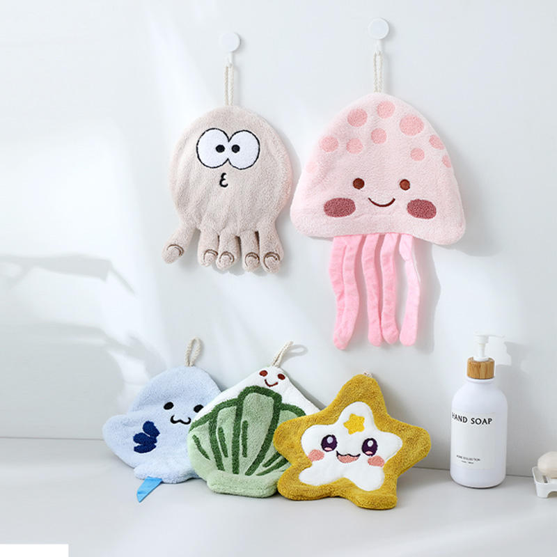 Serviette de toilette suspendue style pieuvre en polaire corail non pelucheuse, ultra absorbante, douce, double usage pour cuisine, salle de bain et maison