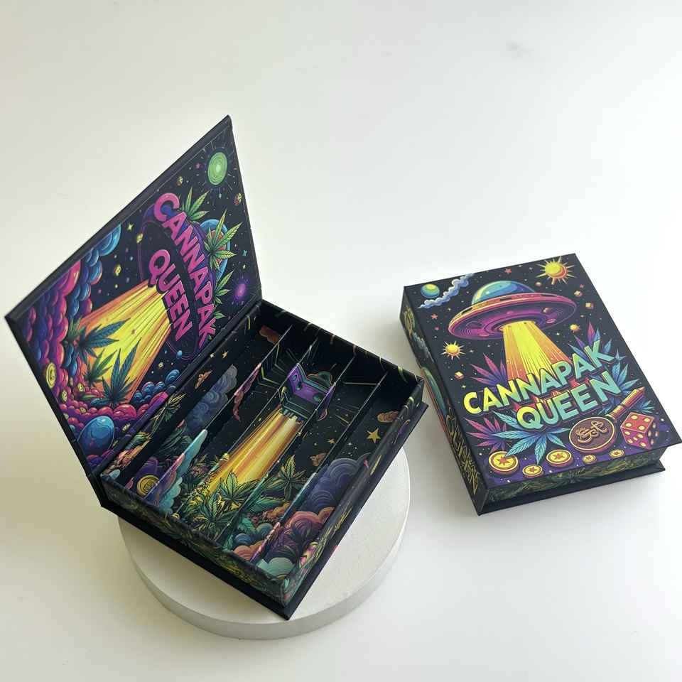 Boîte d'emballage personnalisée anti-odeur en forme de livre pour cônes fumeurs, lot de 5, 98 mm, avec fentes pour cigarettes roulées