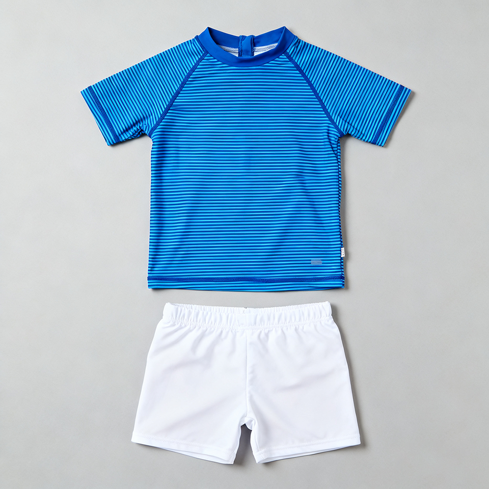 Maillot de bain 2 pièces pour garçon de grande taille personnalisé Oeko Tex Maillot de bain à manches courtes chemise et pantalon pour la plage pour les tout-petits et les enfants UPF 50 +