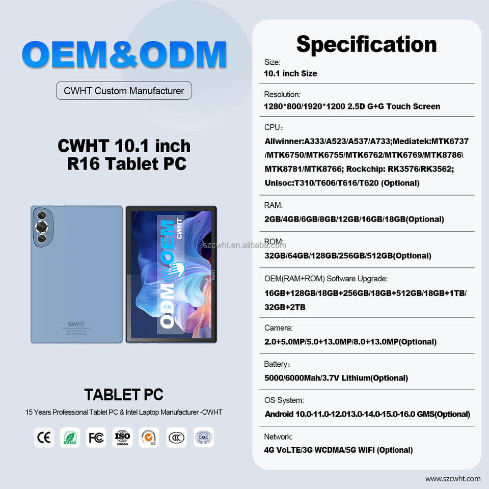 Tablette Android OEM 18 Go + 512 Go double SIM 10,1 pouces éducative avec appels téléphoniques, vente en gros, jeux, ordinateur portable 2 en 1, tablette