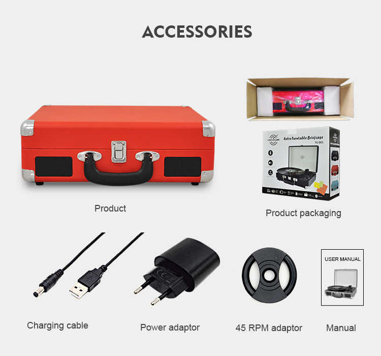 Lecteur de CD audio Bluetooth OEM, lecteur de disques vinyles, entrée auxiliaire, radio, cassette, liaison PC, enregistrement, tourne-disque à 3 vitesses