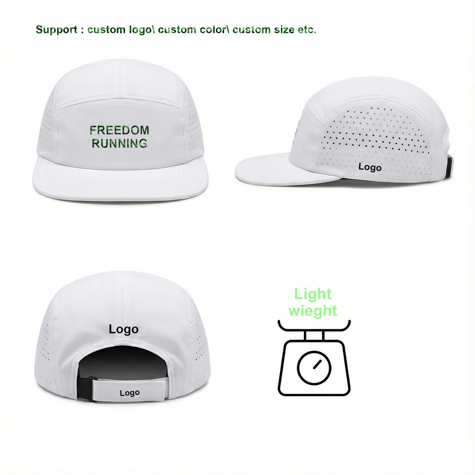 Casquette de course et de camping pliable 2-en-1 en ripstop à 5 panneaux, ajustement profond, en maille respirante, réfléchissante et tendance pour les activités de plein air – Modèle OEM Ciele personnalisé