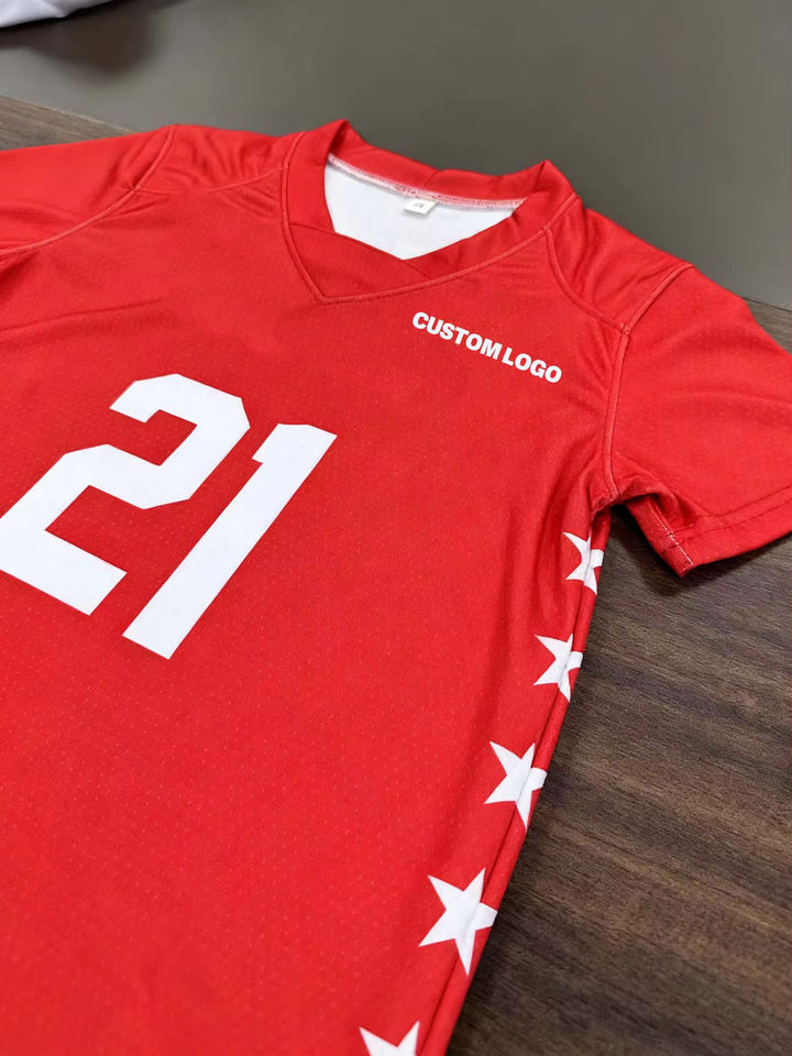Maillot de football américain en maille respirant 100 % polyester, coupe ample, personnalisé OEM, séchage rapide, uni, sportif, avec sublimation et coutures