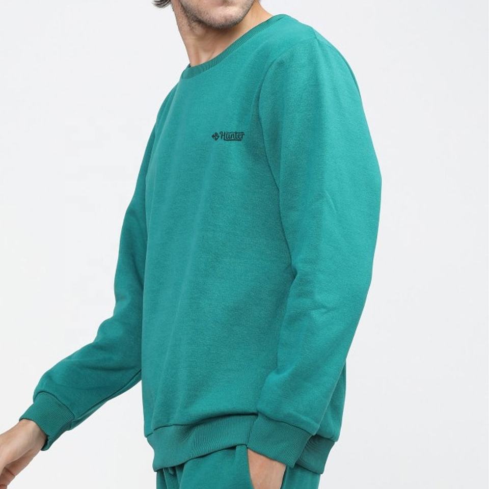 Sweat-shirt en molleton personnalisé OEM de haute qualité, col ras du cou, couleur unie, basique, mélange de coton, séchage rapide, pour homme
