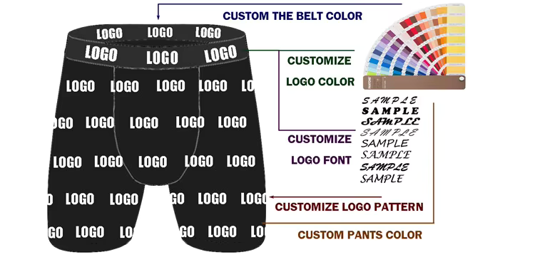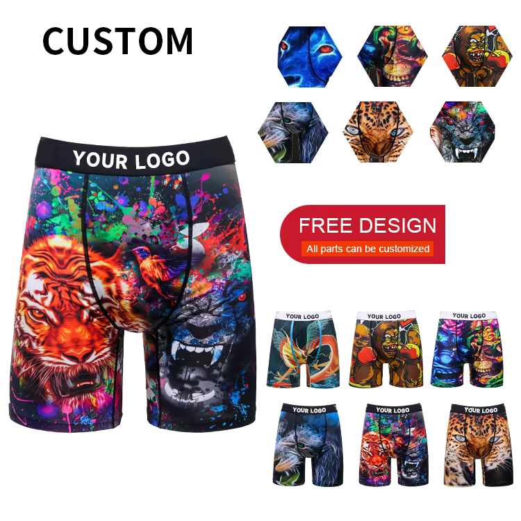 Sous-vêtements pour hommes en coton 92% et élasthanne 8% avec logo personnalisé OEM, taille plus, sublimation, boxer long à taille mi-haute