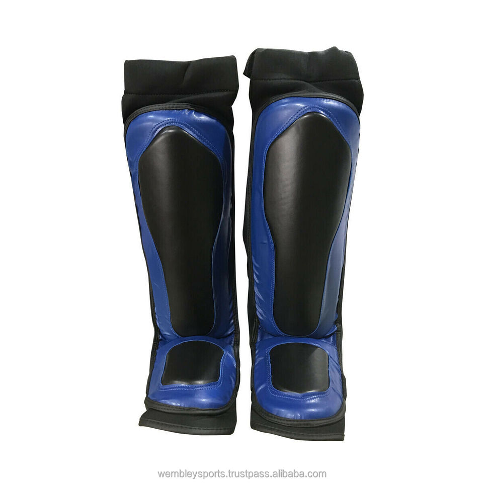 Protège-tibias de boxe personnalisés avec logo OEM, en cuir, protection professionnelle, légers, pliables, avec cadre métallique, chauffe-tibias