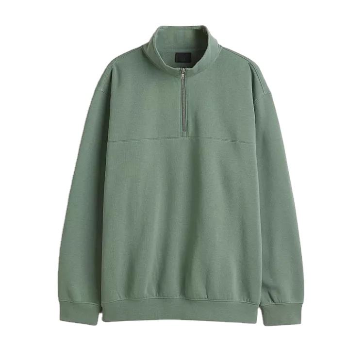 Oem Custom Plain Hoodies Cotton Men Jumper 14 Zip Pullover Green Blank Quarter Zip Sweatshirt