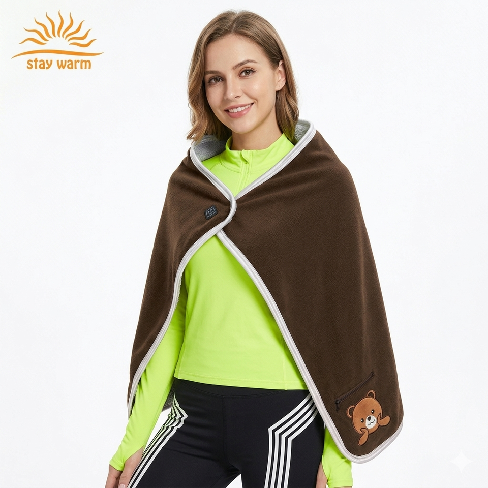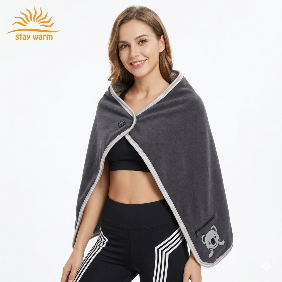 Châle chauffant électrique portable OEM personnalisé, rechargeable par USB 5V, avec 3 niveaux de chaleur, idéal pour le bureau, la maison, le camping et les voyages