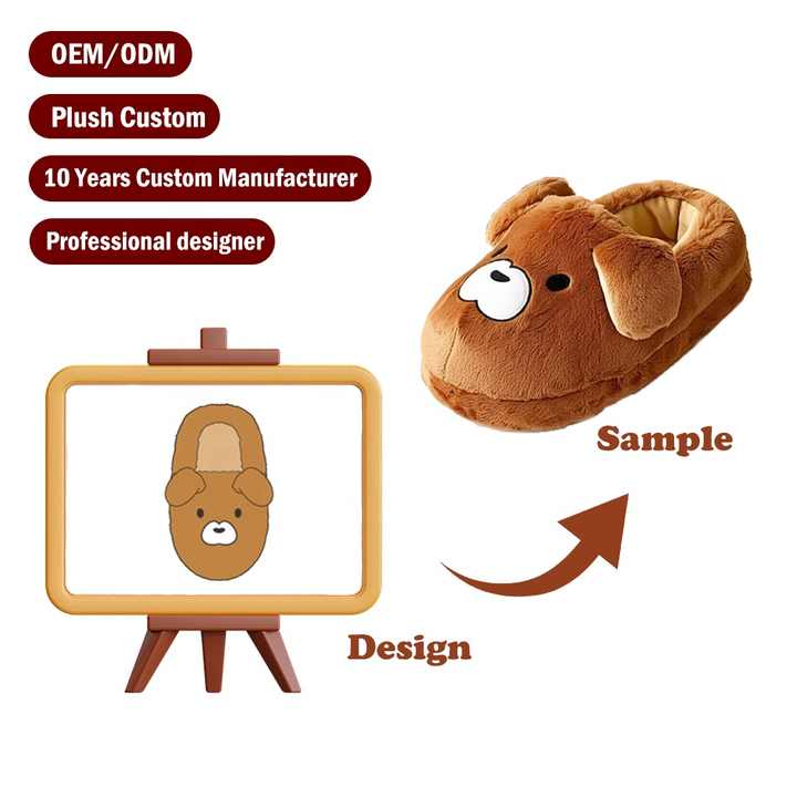 Chien en peluche douce personnalisé OEM avec semelle extérieure en EVA chaussures de maison chaudes d'automne/d'hiver pour femmes fourrure de marche à la plage