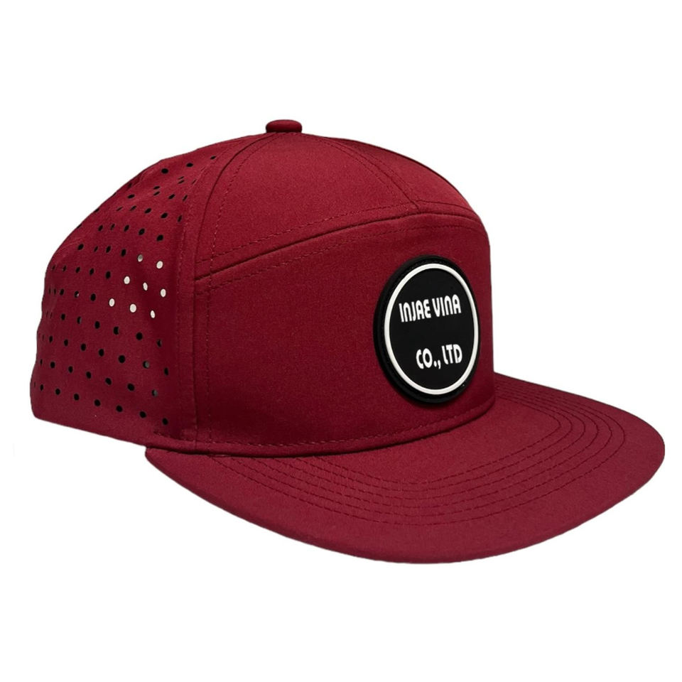 Casquette de golf Oem personnalisée Sporty 7 Panel Gorras Rubber Patch Logo Polyester Laser Cut Hole, Casquette de baseball à bord plat de haute qualité