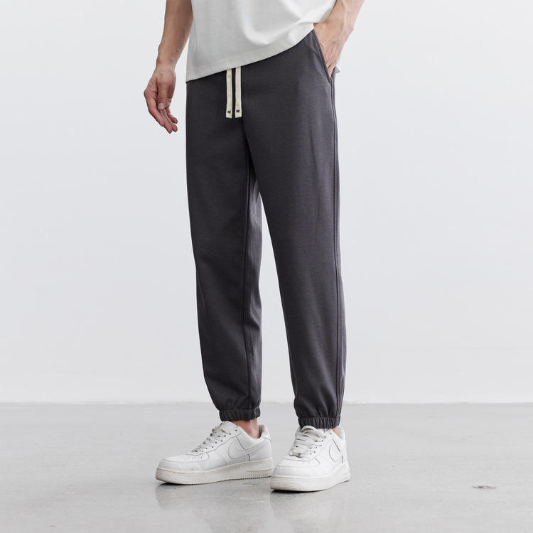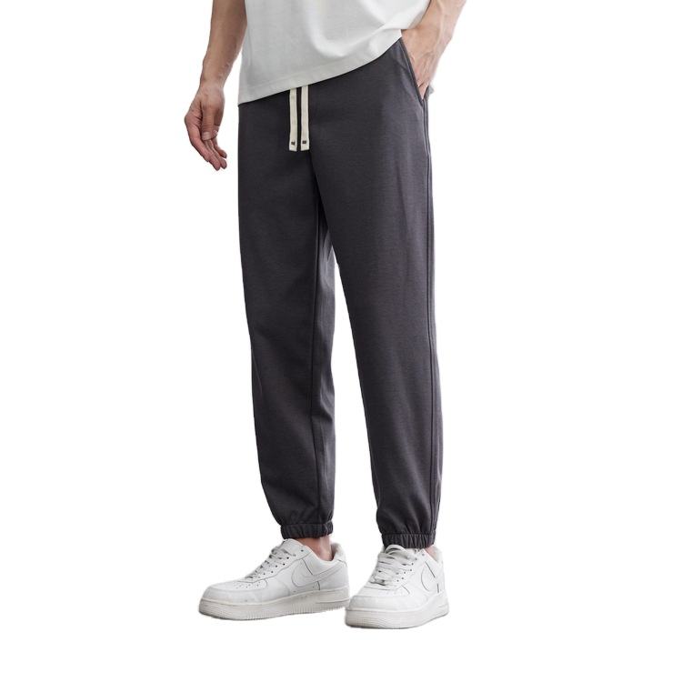 OEM design de logo personnalisé cool petit pantalon droit à neuf points pour hommes en lyocell tencel coton jambe-cravate pantalon de sport décontracté