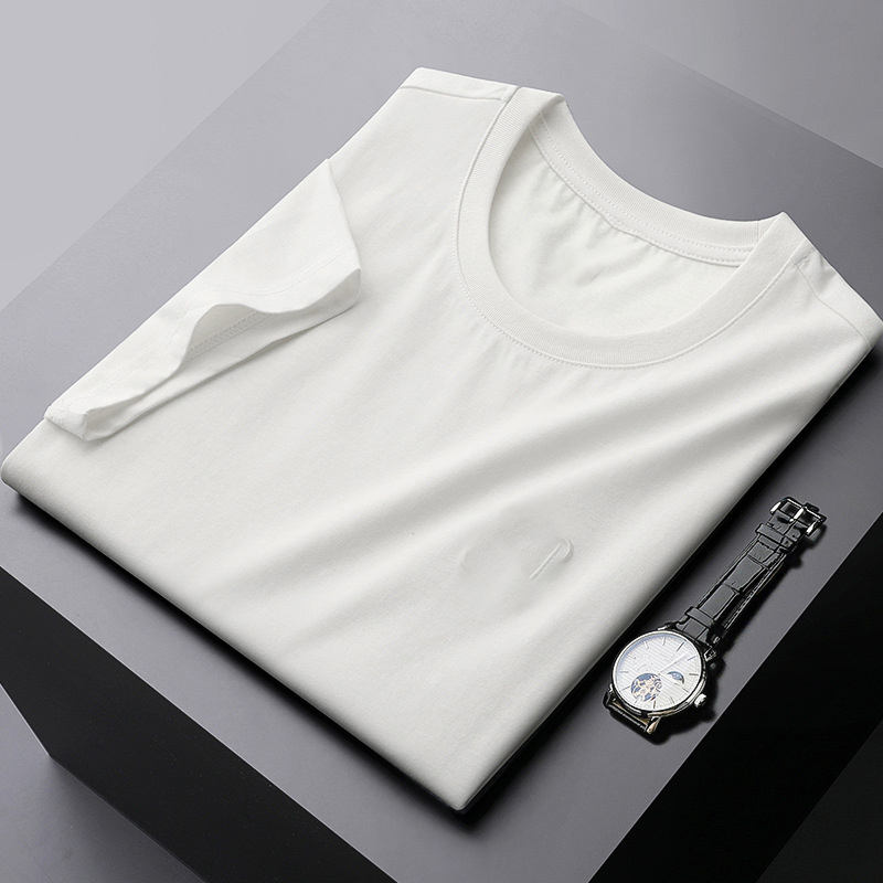 OEM Conception de logo personnalisé T-shirts respirants décontractés à la mode brodés à manches courtes de couleur unie en coton mercerisé