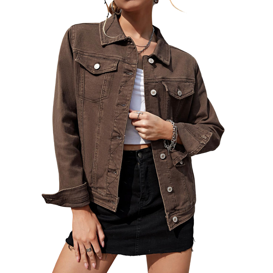Veste en jean OEM en gros, boutonnée, décontractée, look classique, 100% coton, respirante, couleur unie, veste en jean pour femmes