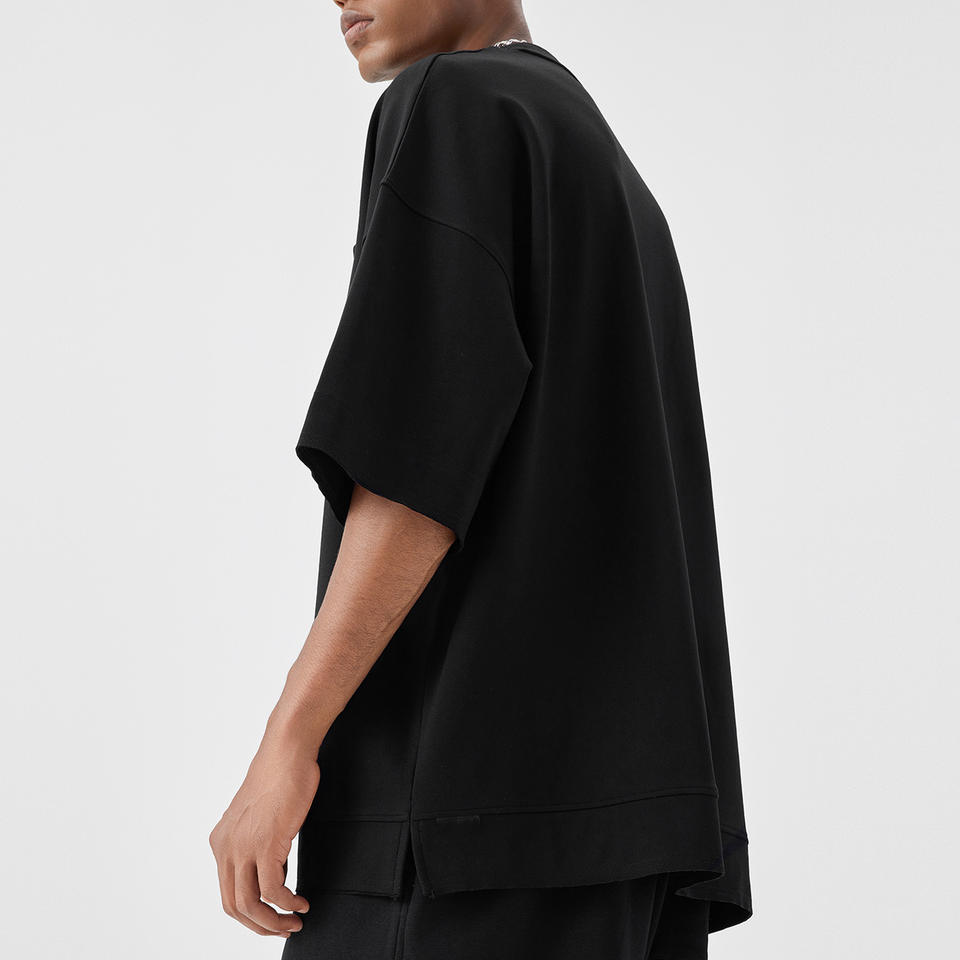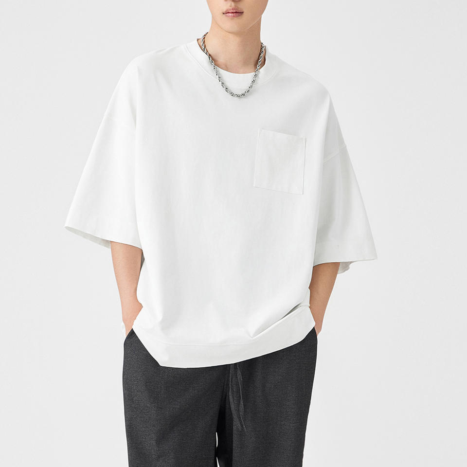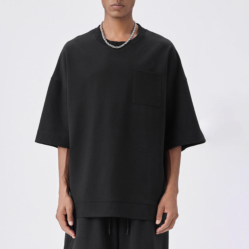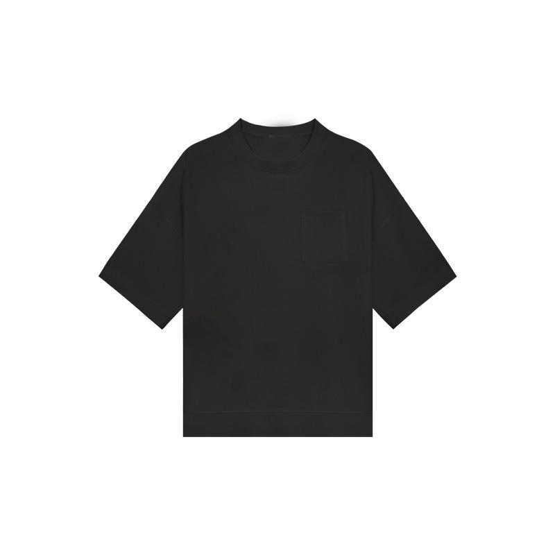 T-shirts noirs à épaules tombantes de conception OEM pour hommes, vente en gros, t-shirt personnalisé de haute qualité, petite poche, 100% coton