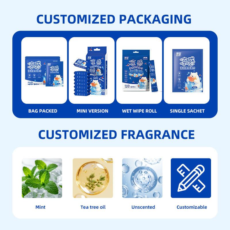 Lingettes corporelles désodorisantes rafraîchissantes à sensation glaciale au menthol, sans alcool, jetables, emballées individuellement, longue durée, OEM