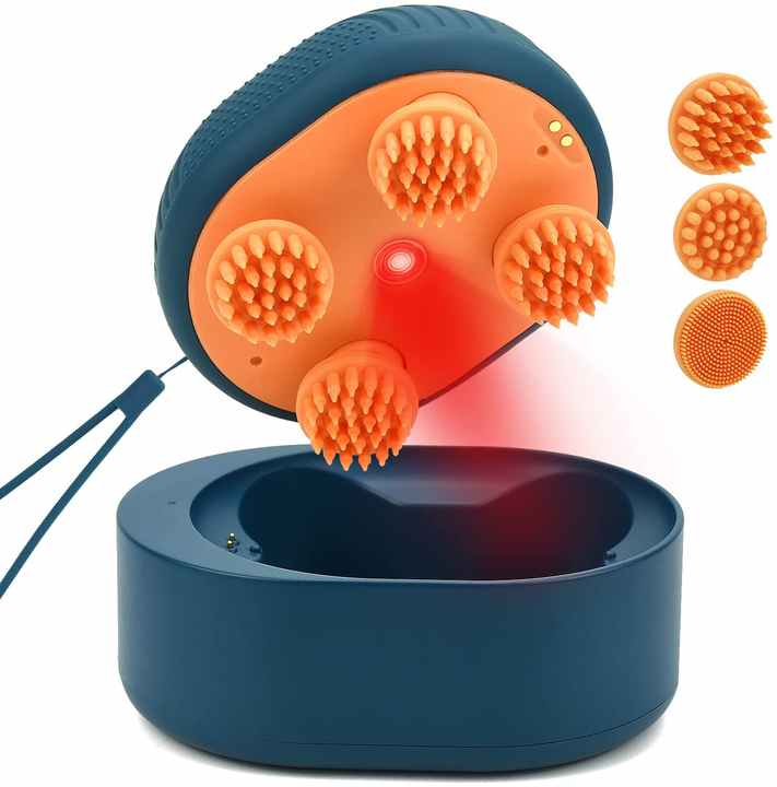 Masseur de cuir chevelu électrique portable rechargeable OEM, étanche, avec pétrissage et 84 points de massage