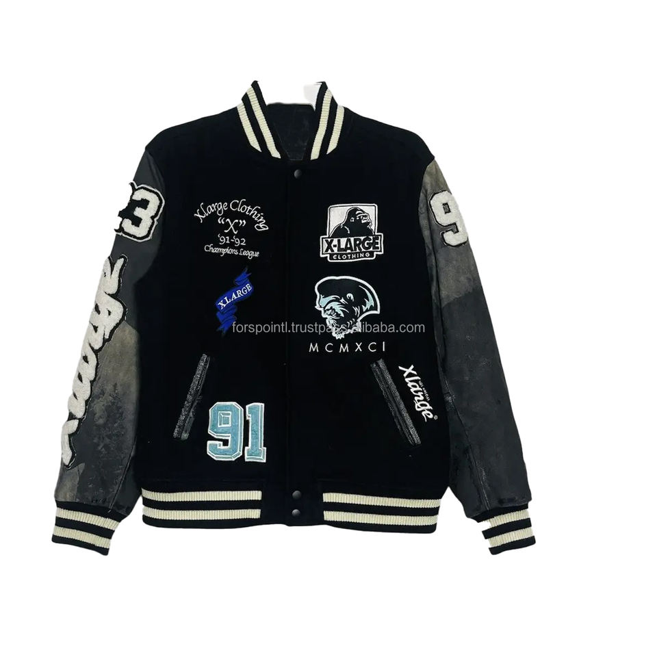 Oem Haute Qualité Écusson Brodé Hommes Collège Personnalisé Blouson de Baseball Blouson Varsity Letterman à Manches en Cuir
