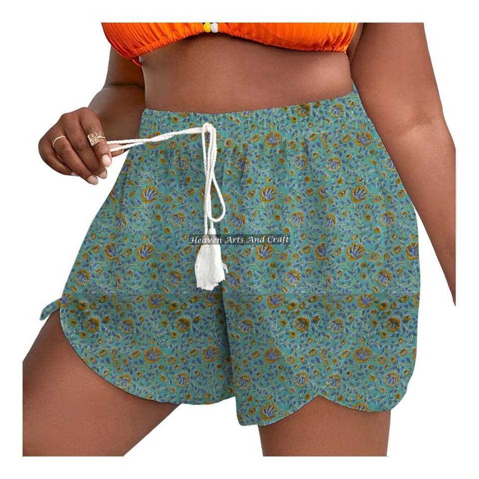 Product name:100% Cotton Hand Block Printed Rope Drawstring Wrap Shorts