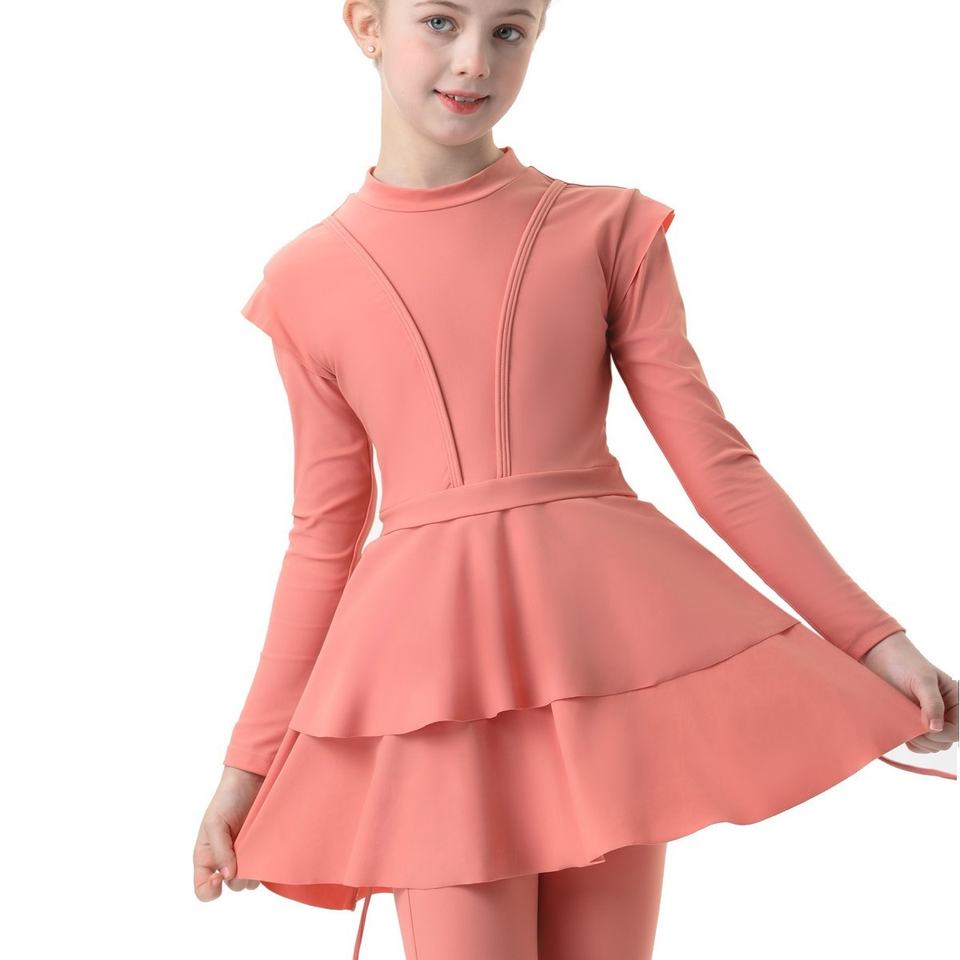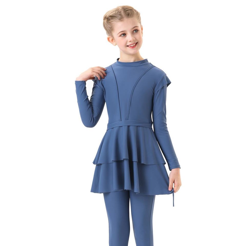 Maillot de bain de plage conservateur pour filles à motif solide Oem nouveau style pour enfants maillot de bain musulman de grande taille avec logo sur le devant