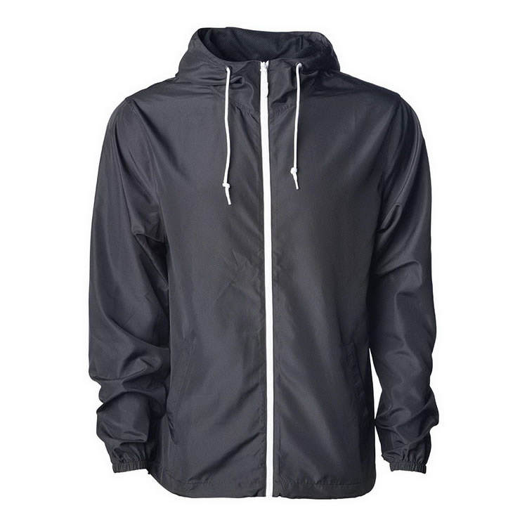 Veste de fitness unisexe noire à capuche avec fermeture éclair complète OEM en nylon et polyester pour l'extérieur veste coupe-vent pour la neige avec logo personnalisé pour hommes