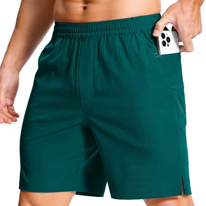 Shorts de course pour hommes, service OEM, matière 100% polyester, couleur unie, respirant, look décontracté.