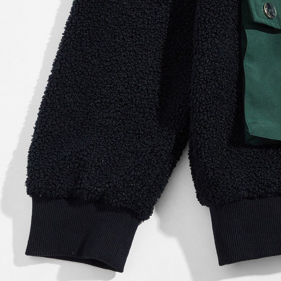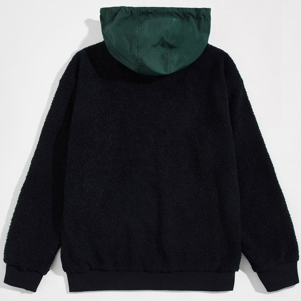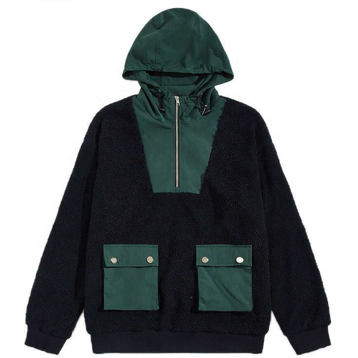 Oem University Baggy Sherpa Pullover 14 Zip Sweatshirt Two Button Up Pockets Mens Sherpa Fleece Patchwork Hoodie DDP Shipping