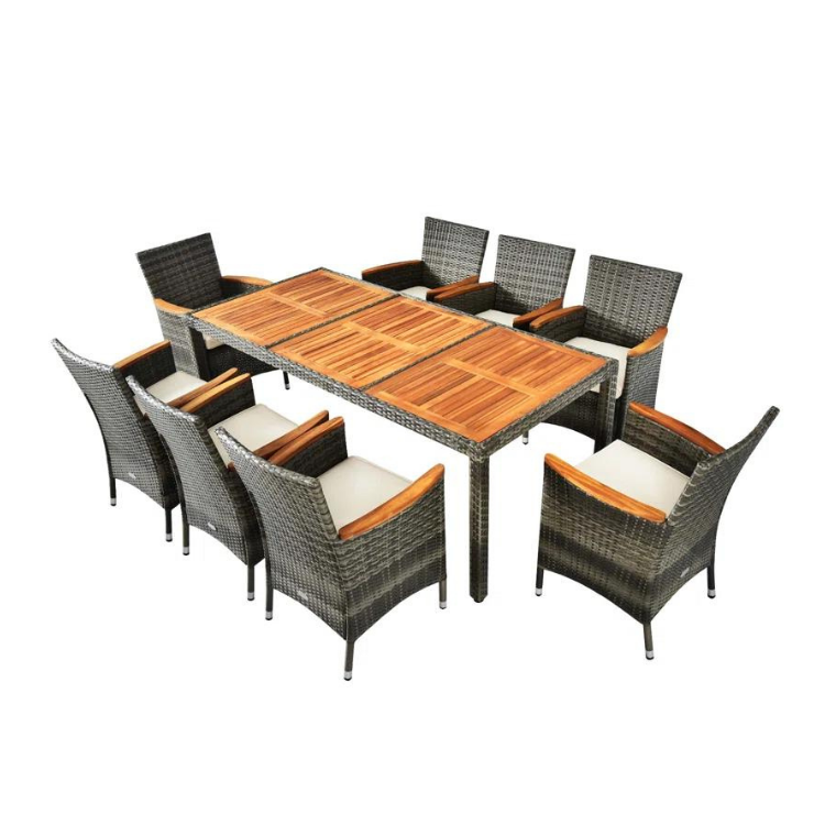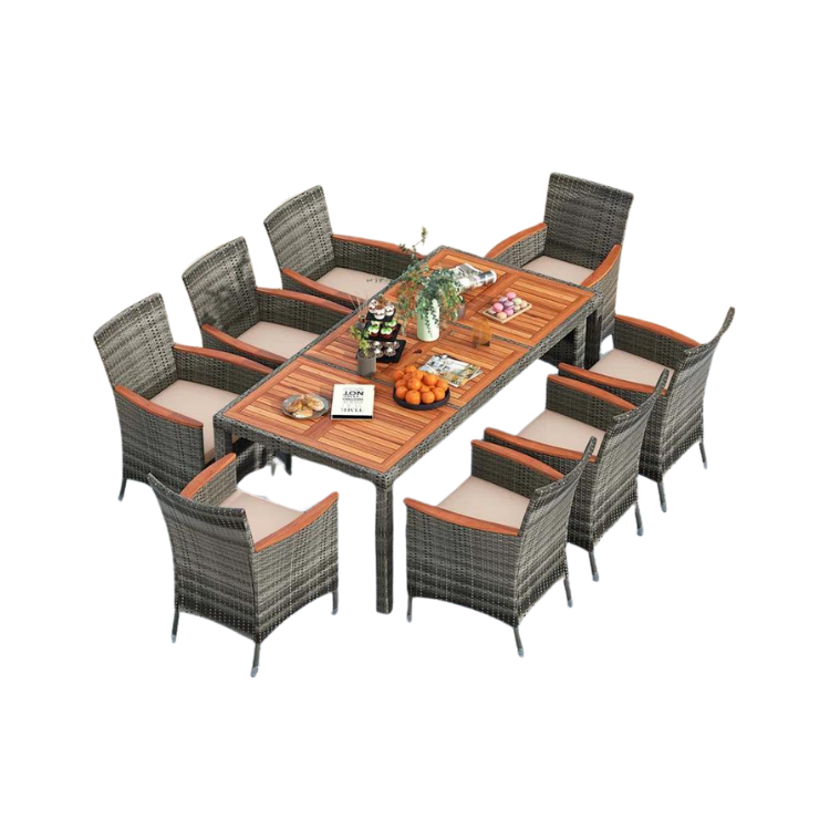 OEM vente en gros ensembles de salle à manger conception personnalisée meubles d'extérieur en rotin ensemble de salle à manger en rotin en osier 8 places grossiste Phu Linh