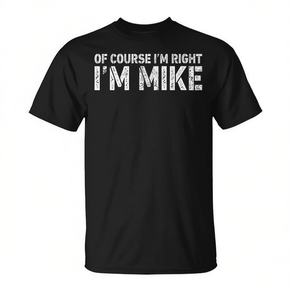 Bien sûr, je'ai raison, je suis Mike, t-shirt personnalisé noir, vêtements décontractés pour hommes