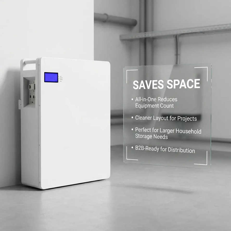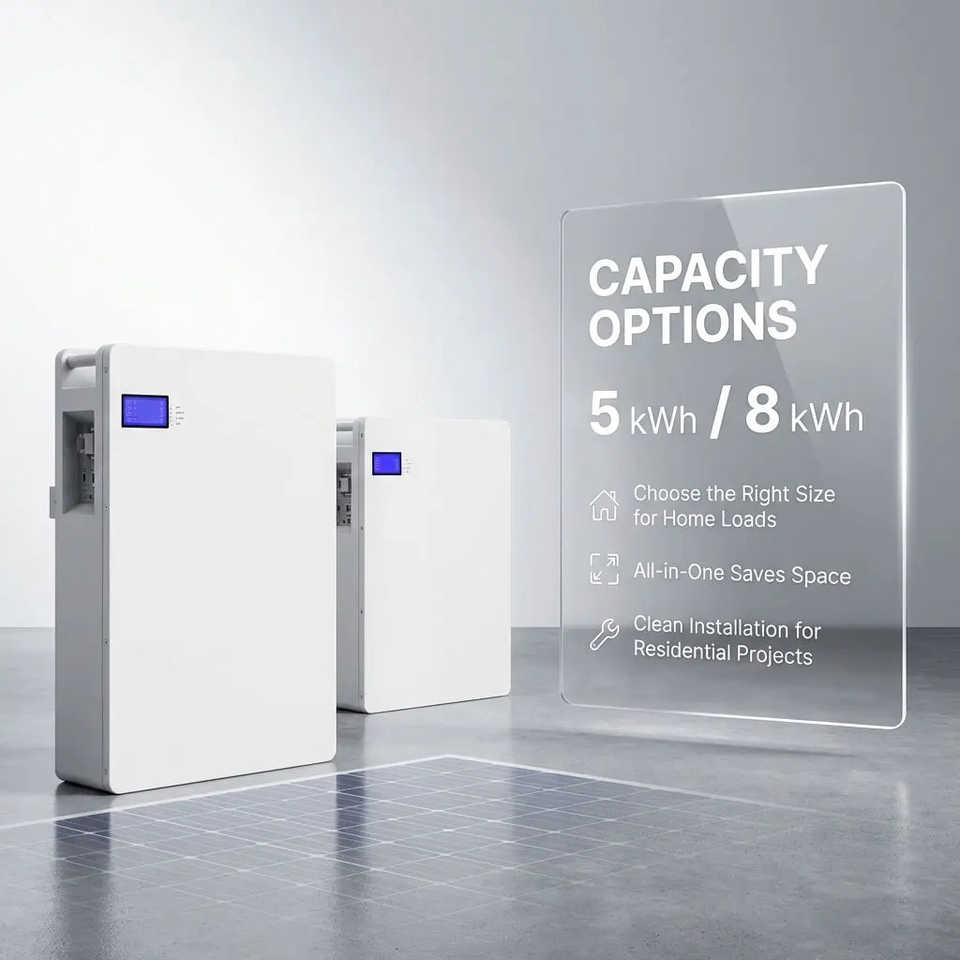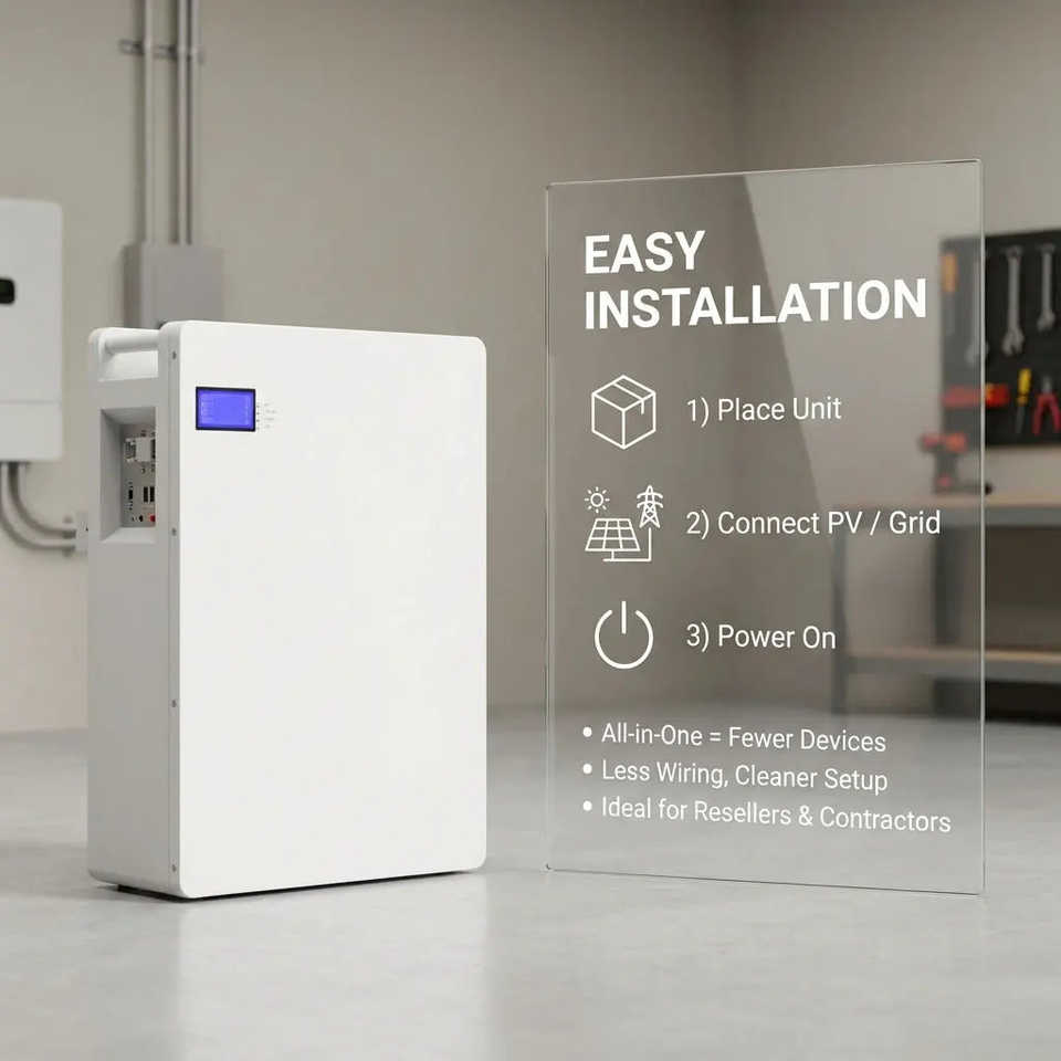 Système de stockage solaire hybride hors réseau 8 kWh 51,2 V LiFePO4 tout-en-un avec onduleur 5 kW blanc