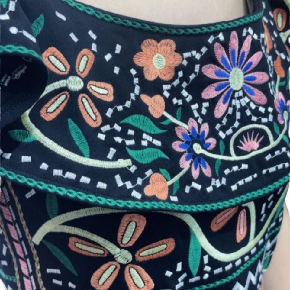 Robe d'été élégante pour femme, à épaules dénudées, avec broderie vintage et détails élastiques, idéale pour les soirées