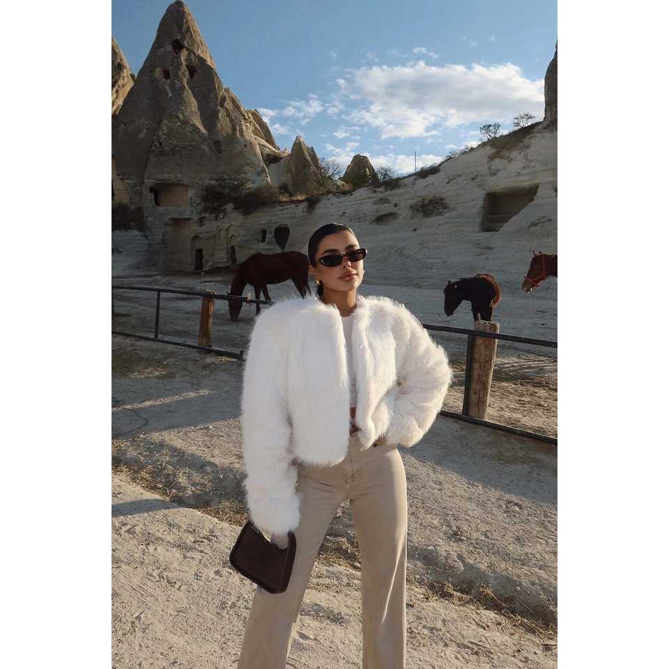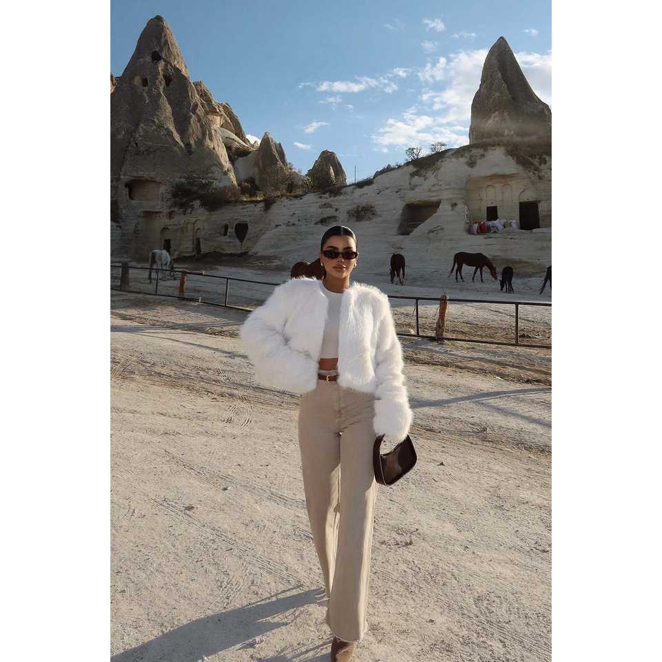Manteau Beige Doublé Fourrure Daim Grande Taille