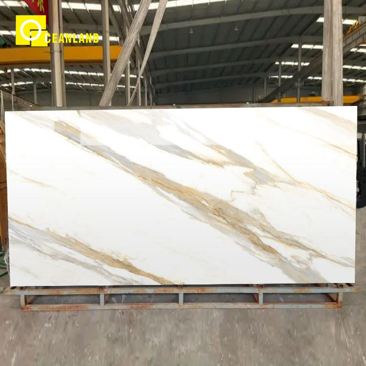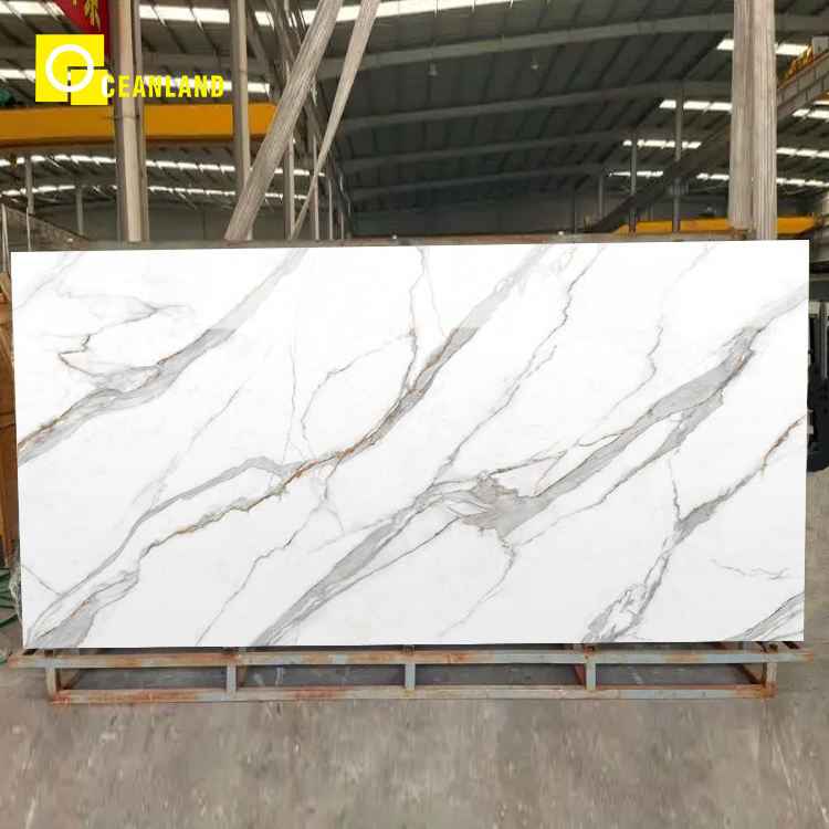 Informations d'emballage pour le plan de travail de l'immeuble de bureaux en porcelaine de marbre blanc et or grandes plaques carreaux de pierre frittée.