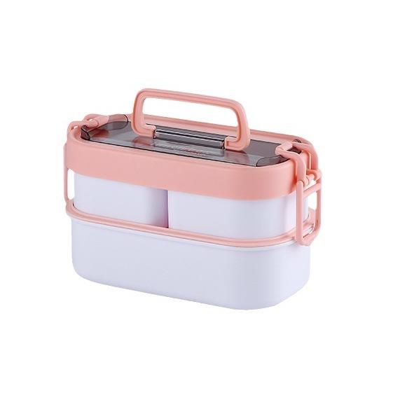 Boîte à lunch pour femme de bureau, boîte à lunch pour enfants d'école, boîte à lunch à 3 compartiments avec couverts, boîte à lunch bento en plastique à 2 étages, adultes, enfants