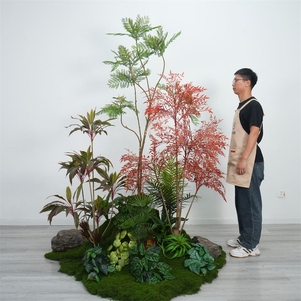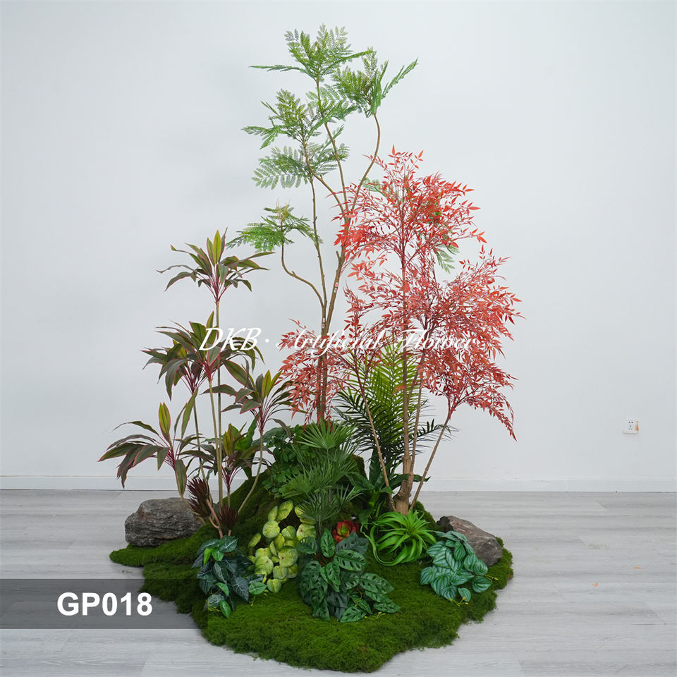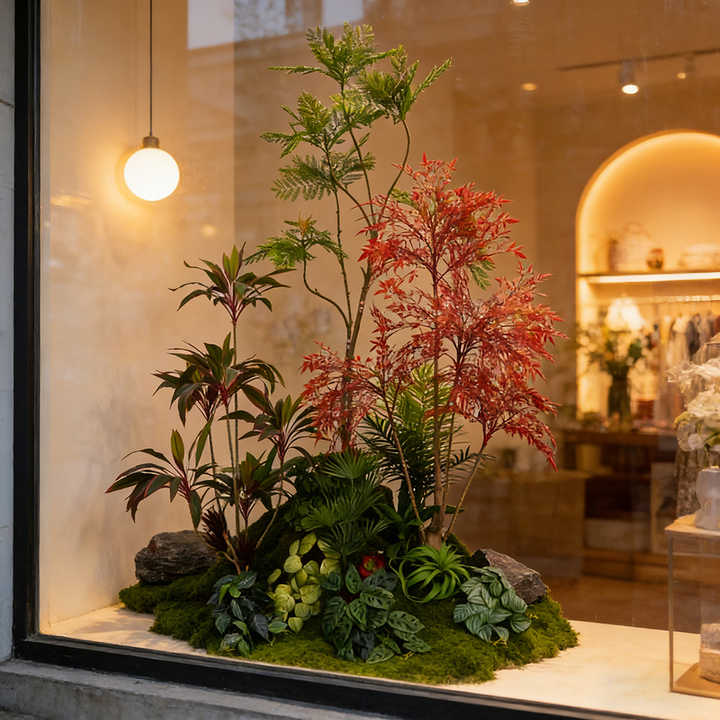 Aménagement paysager de bureau, installation de plantes artificielles, design d'espace intérieur vert, décoration végétale