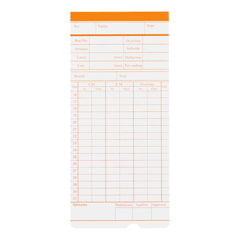 Carte d'enregistreur de temps d'enregistreur de temps mensuel Carte de poinçonnage hebdomadaireNom de l'article: