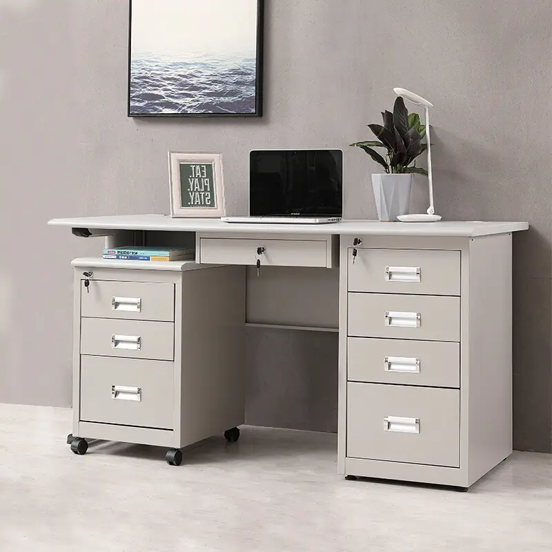 Bureau de bureau standard en acier, dimensions du bureau de bureau, bureau d'ordinateur mobile, table en métal avec tiroirs sous le bureau