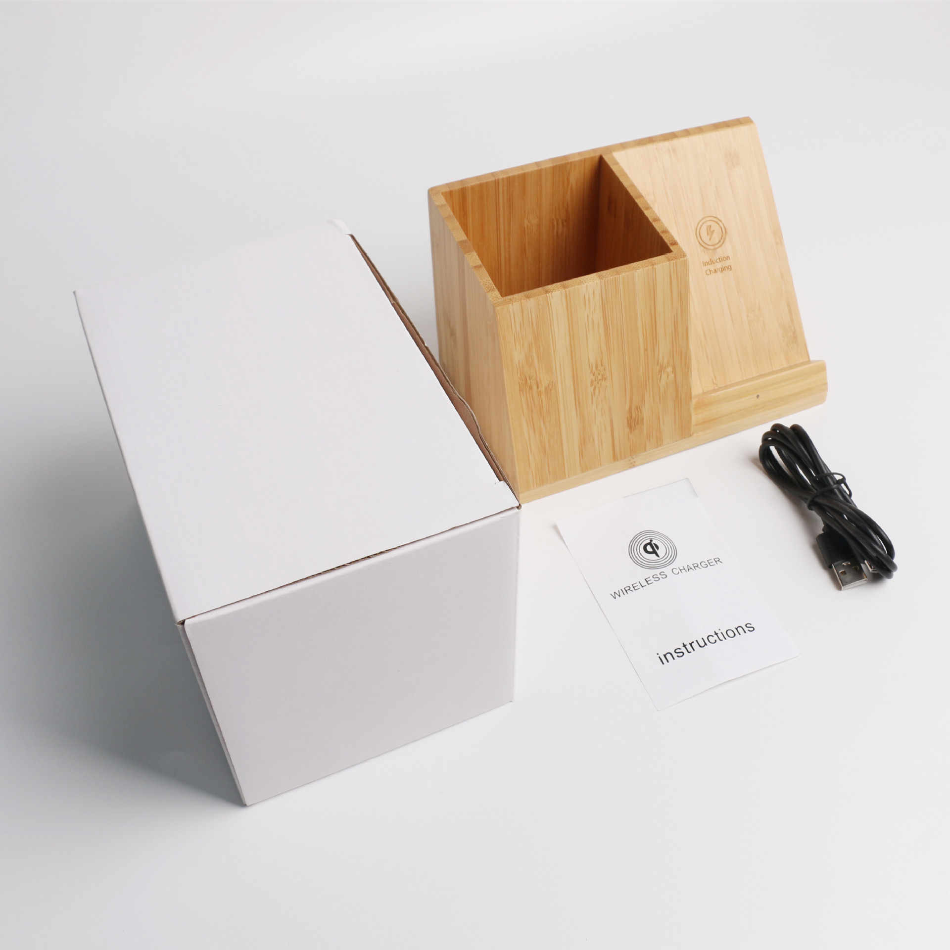 Bureau Table organisateur rapide chargeur sans fil bambou Induction chargeur Dock stylo porte-crayon chargeur sans fil pour iPhone Samsung