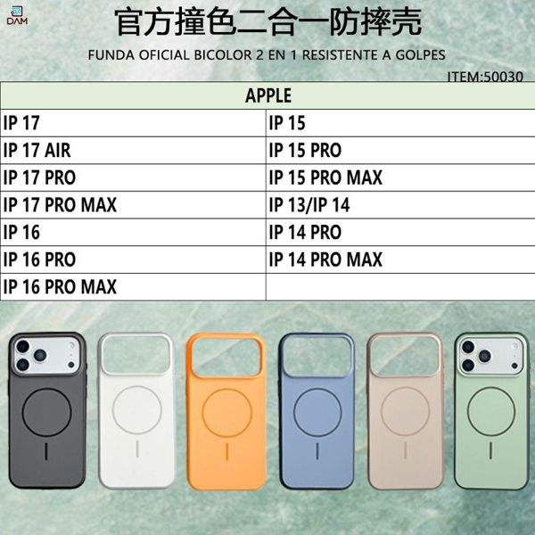 Étui de téléphone portable officiel IP 16 PRO MAX Pure Color 2-EN-7 TPU+PC antichoc pour
