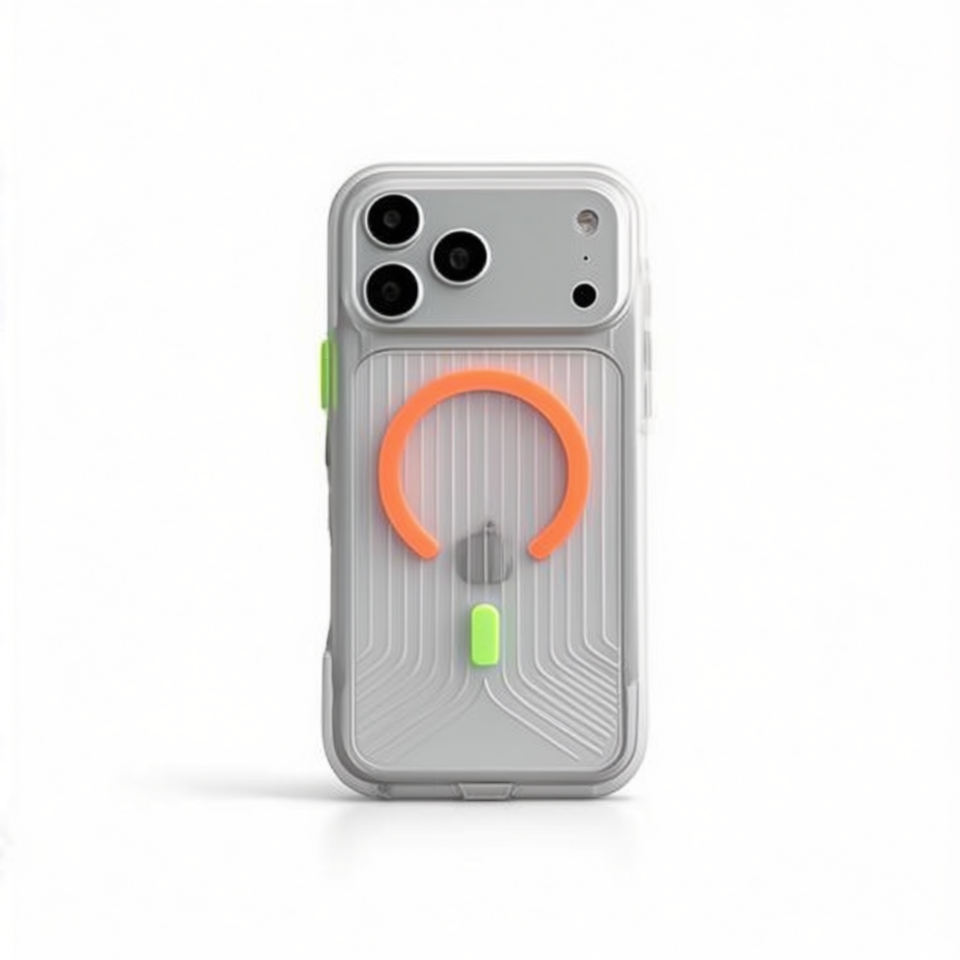 Coque de téléphone transparente officielle IP17 avec anneau magnétique gaufré, texture côtelée luminescente, en TPU+PC