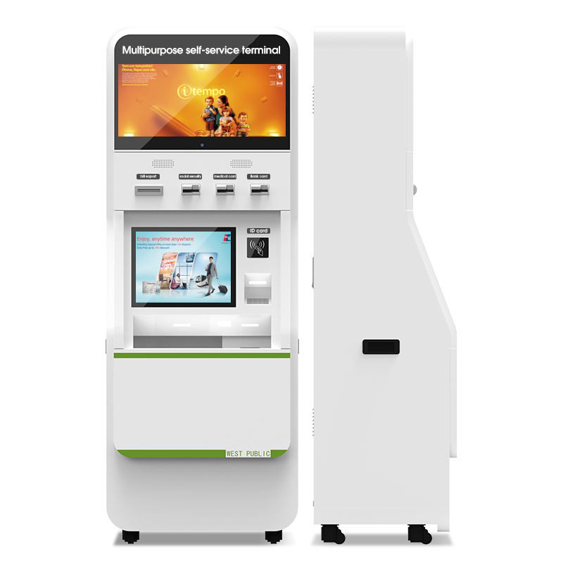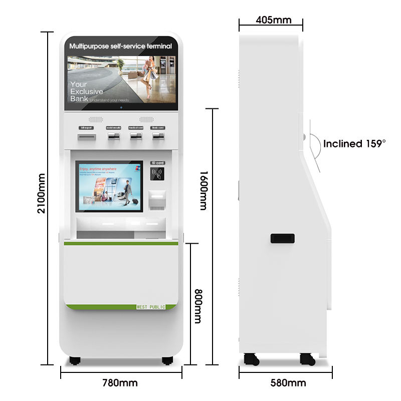 Bâtiment de gestion officielle Kiosque libre-service Terminal de paiement Carte à clés en métal Scanner de code Qr Imprimante Emplacement Pos
