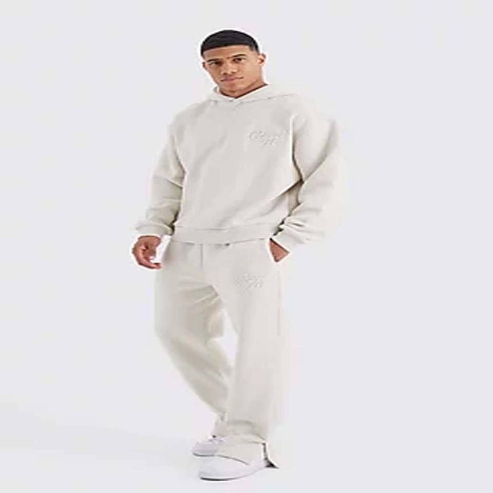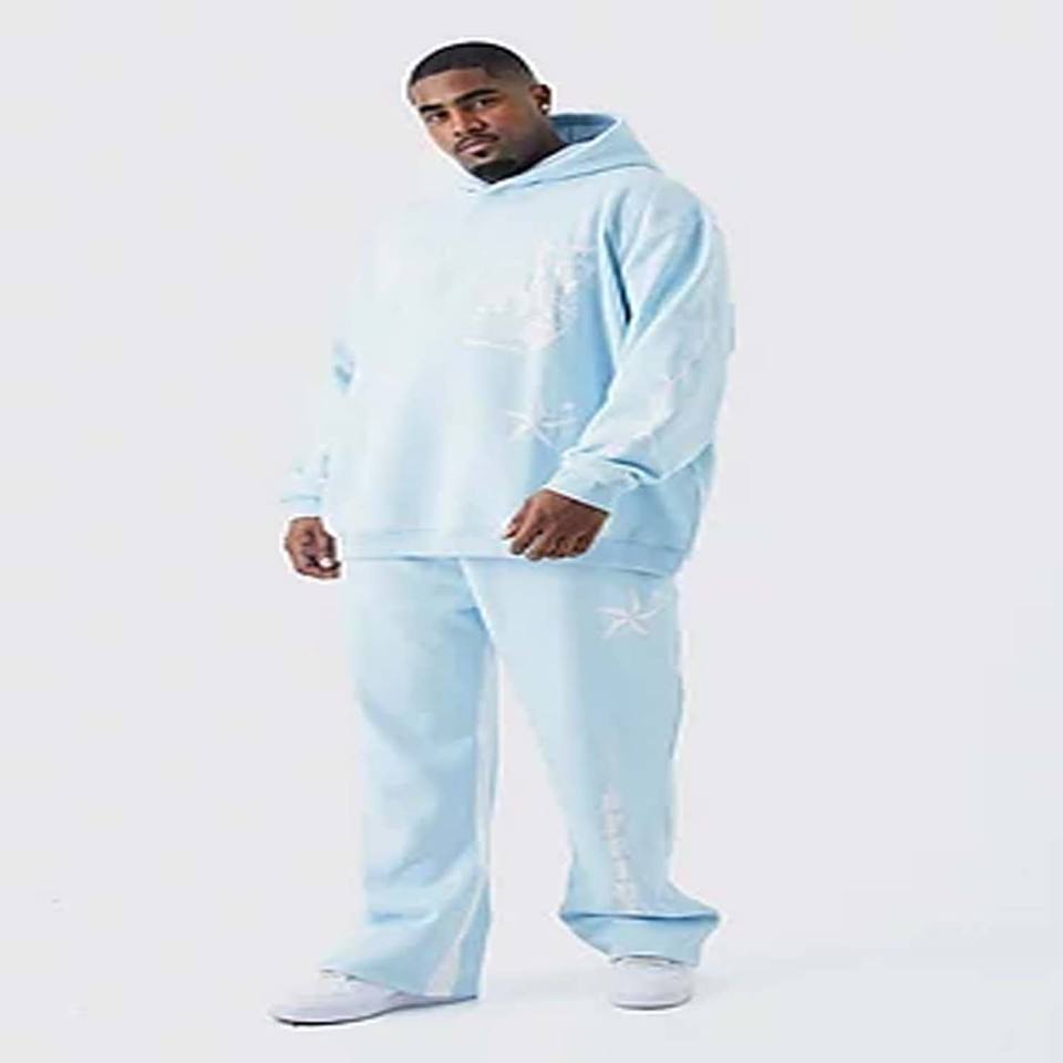 Official Oversized Hooded Embossed Tracksuit New Fashion Custom Stander Size Unisex Puls Stacked Pant Distressed Sweat Suit 100%