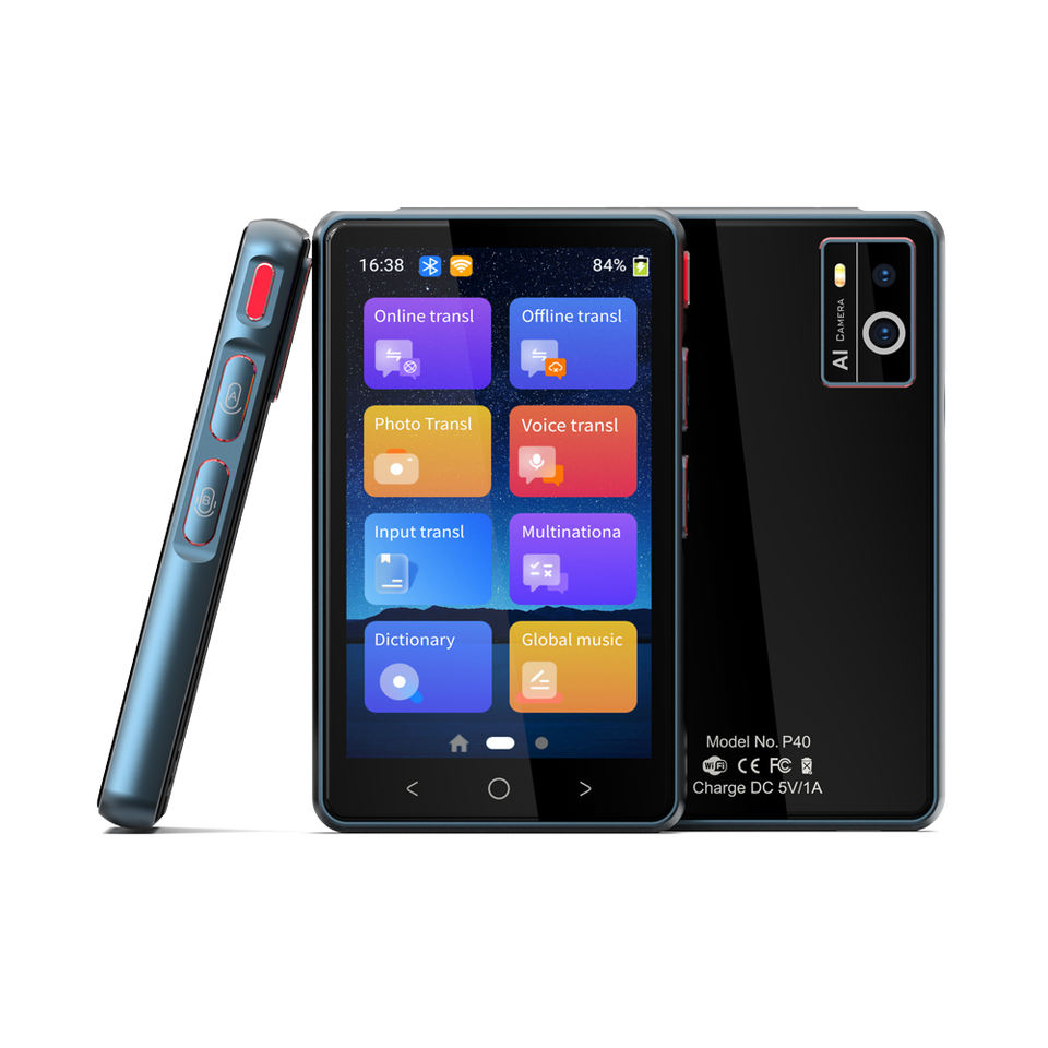 Lecteur MP3 hors ligne P40 4 pouces, traduction instantanée, voix en temps réel, enregistrement photo bidirectionnel, prend en charge 135 langues, Wi-Fi en temps réel