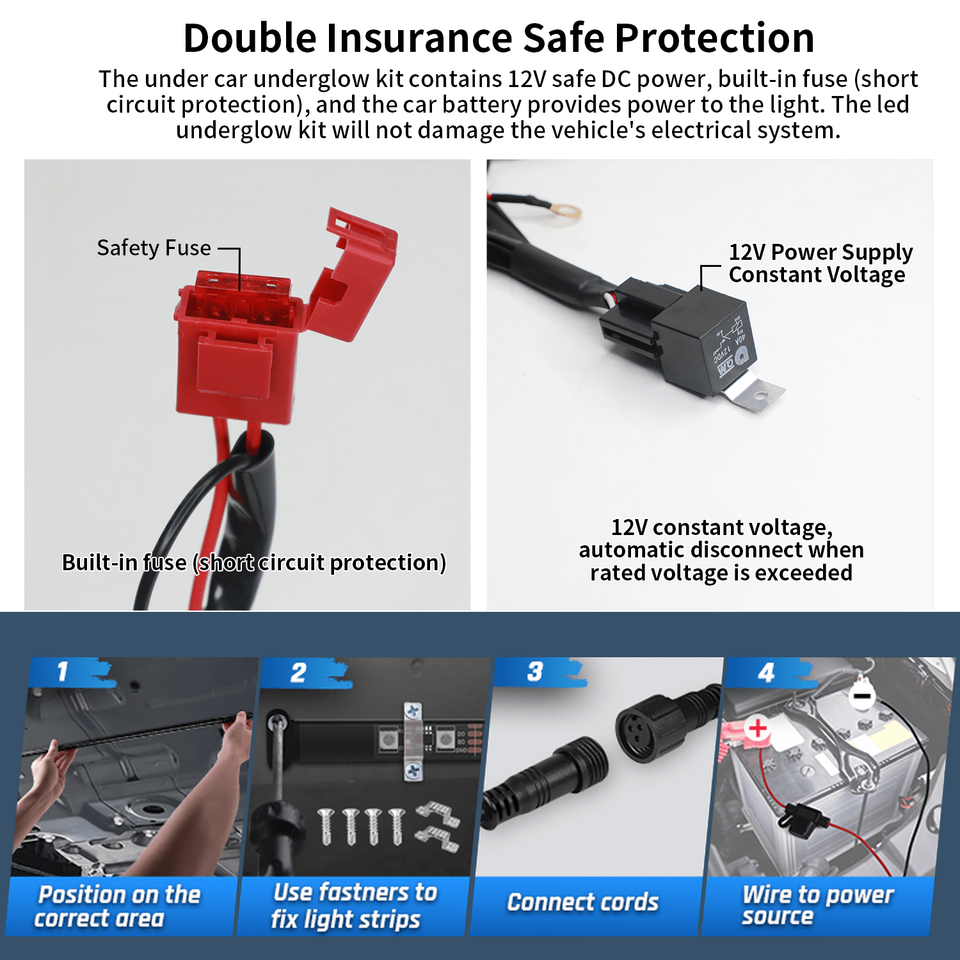 Offroad RGB LED Underglow Light Kit IP68 12V Strip Lights pour camion ATV UTV SUV avec Smart APP Control Music Sync