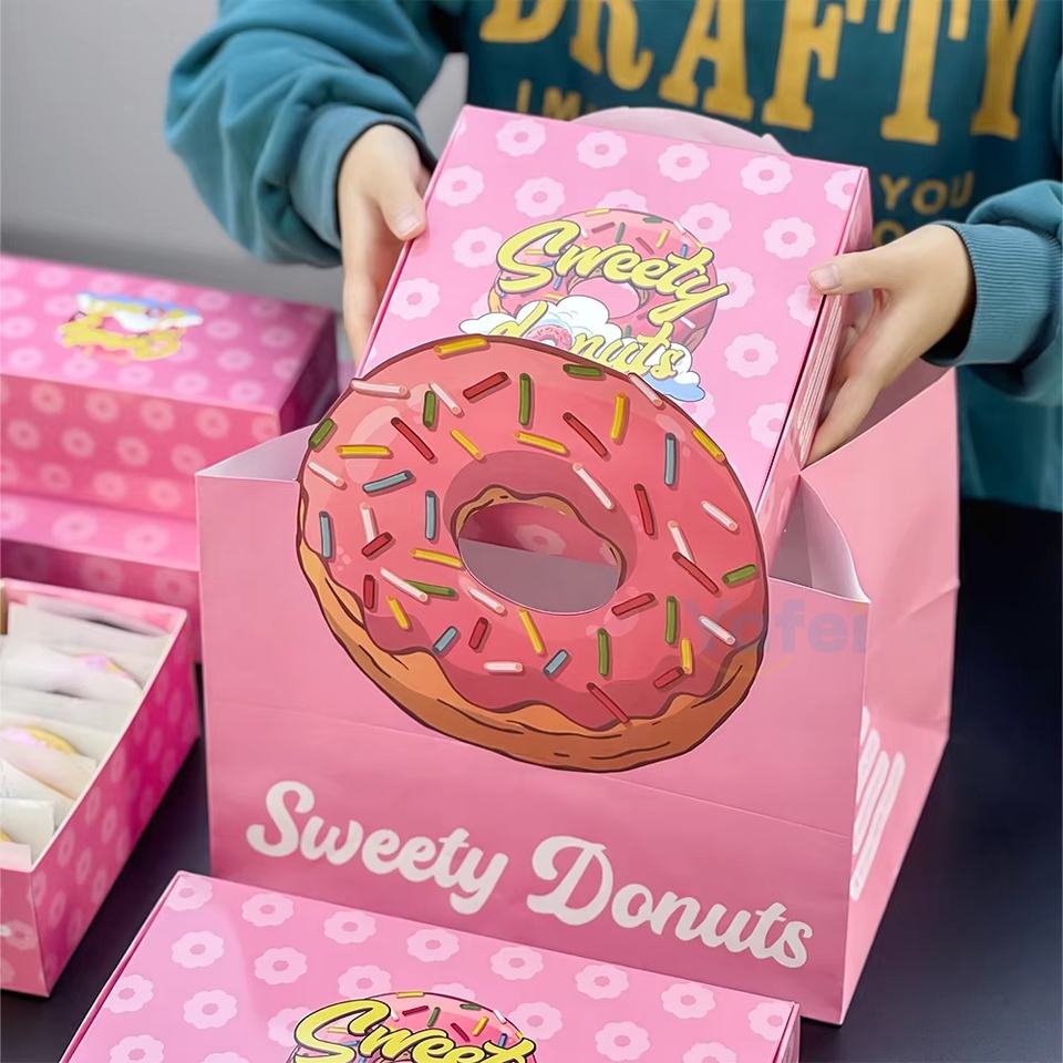Boîte en papier personnalisée pour la pâtisserie, la boulangerie, les gâteaux, les donuts, les aliments, les bento, impression offset