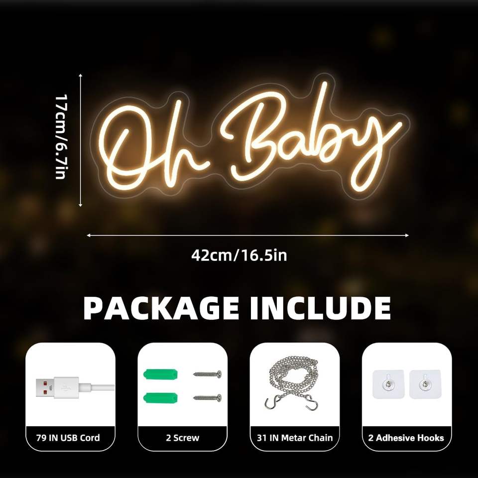 Panneau néon « Oh Baby » à LED blanc chaud pour la maison, les centres commerciaux, les hôtels, les magasins et les bars, décoration murale de fond, décoration de fête de baby shower