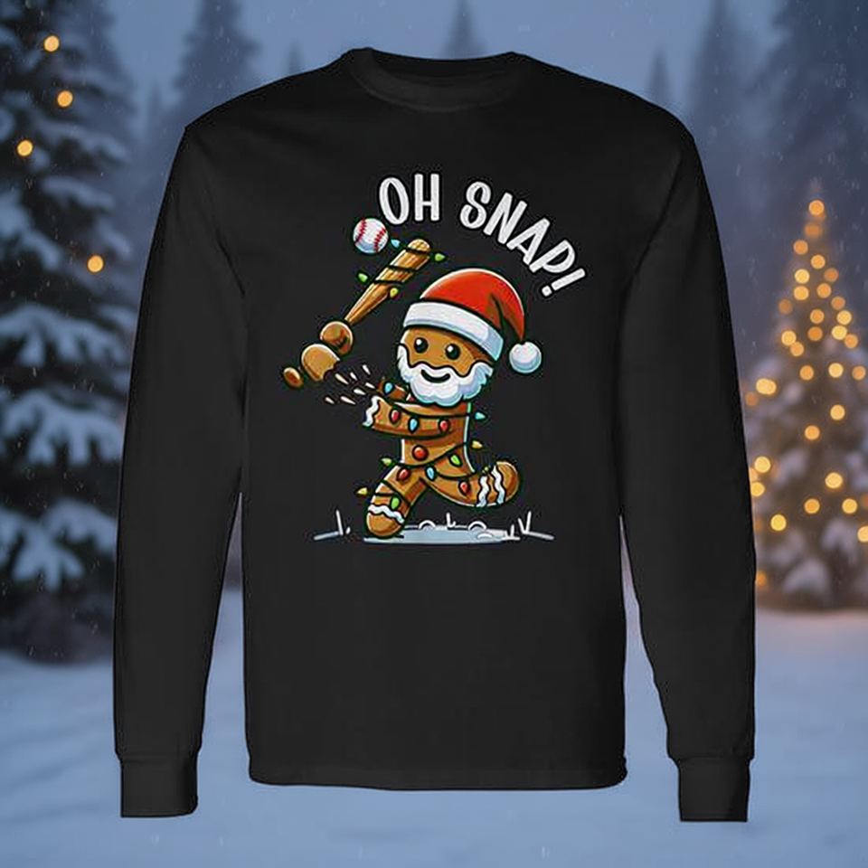 Oh Snap Gingerbreadman Christmas Baseball T-shirt à manches longues