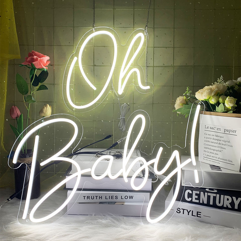 Panneau néon LED « Oh baby » en acrylique, lettres géantes personnalisables, lumière néon pour la maison et les bâtiments, lumière de fête nocturne, bande LED