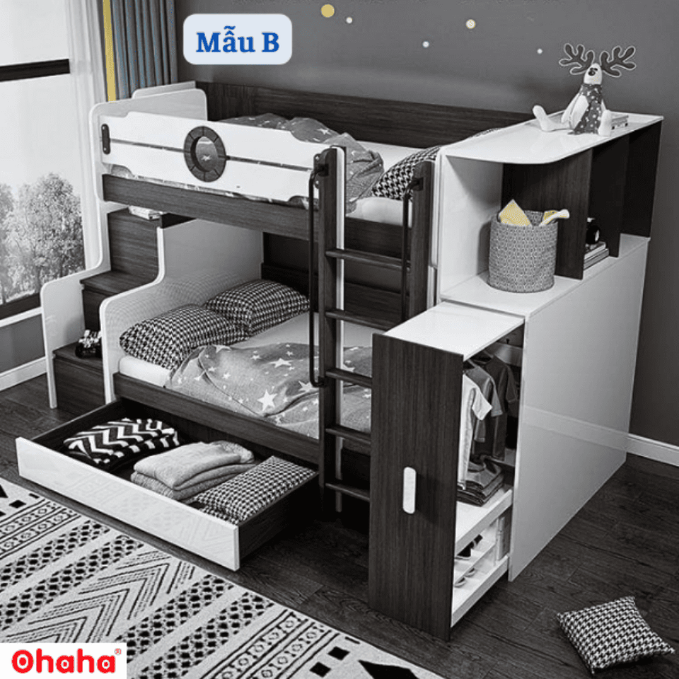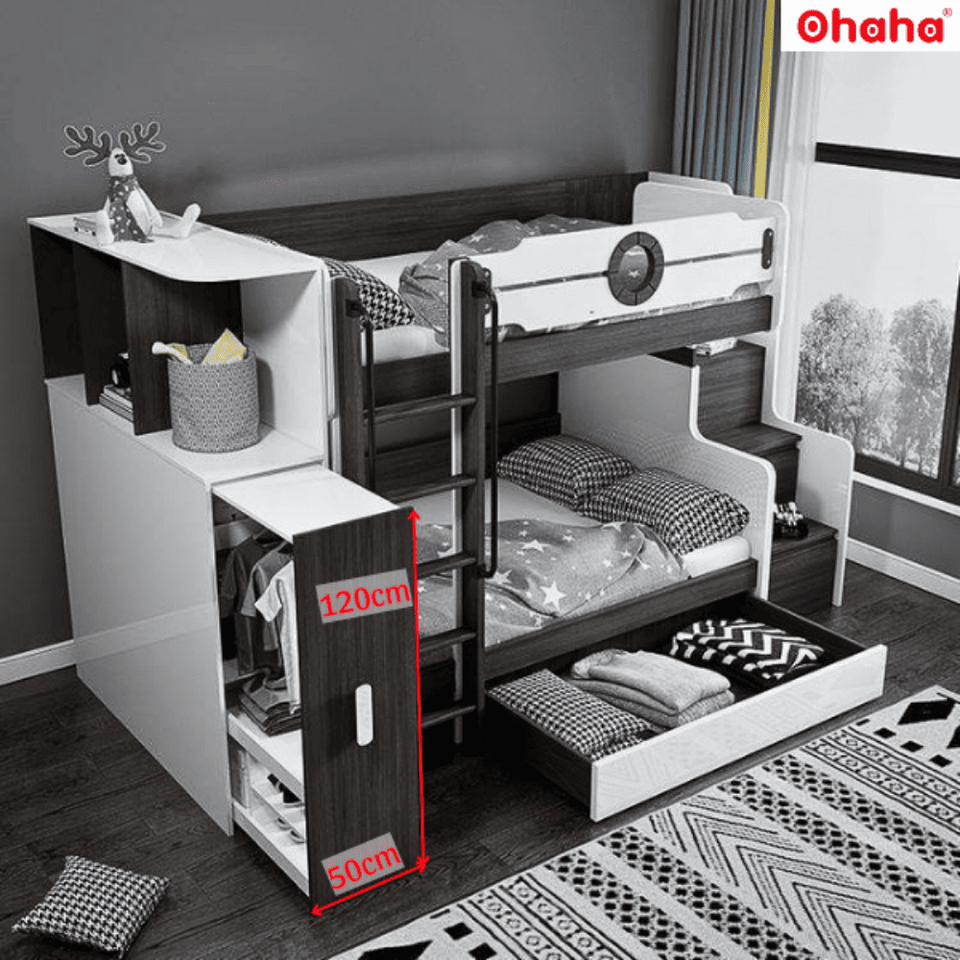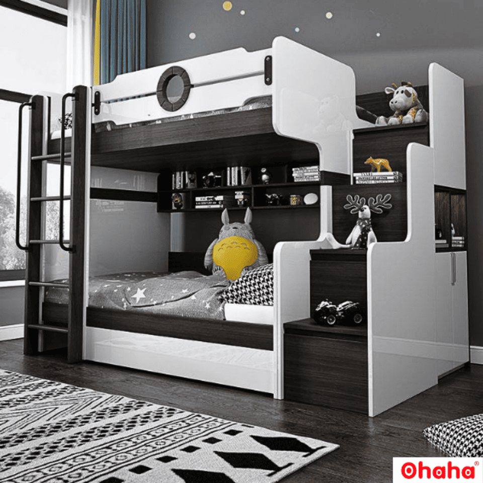 Lit superposé intelligent Ohaha avec plusieurs compartiments de rangement et tiroirs - GTTM027