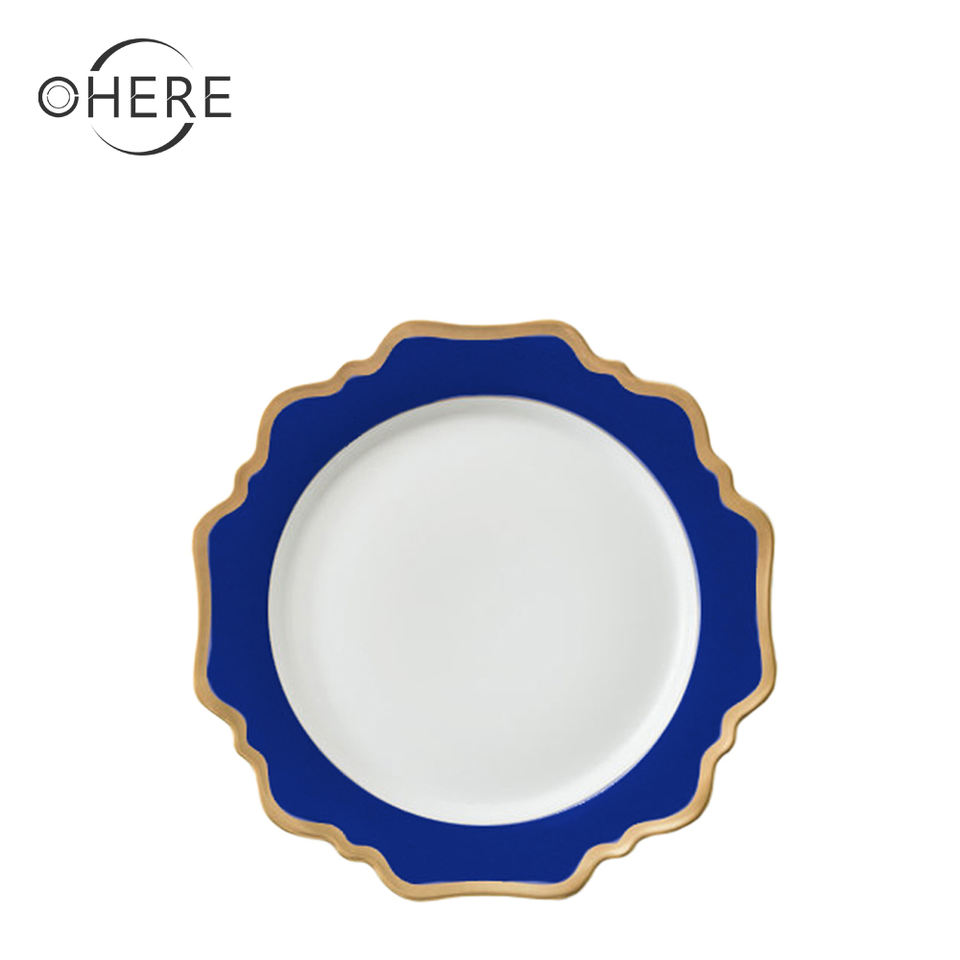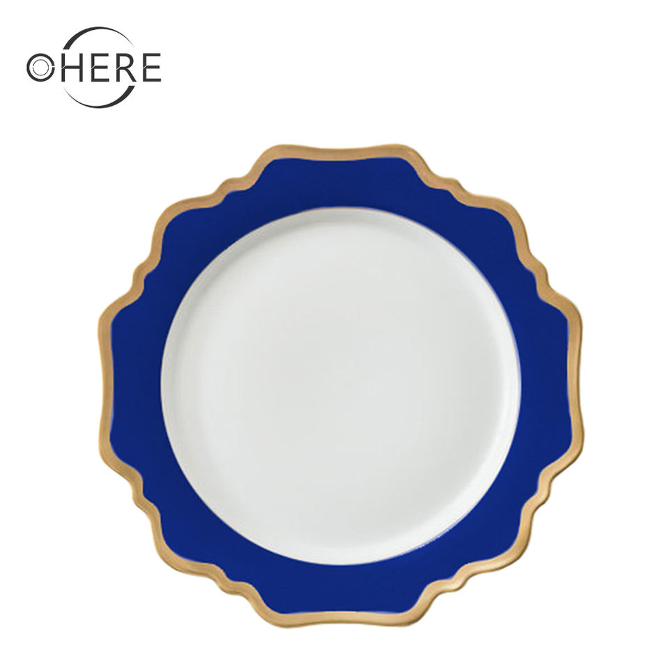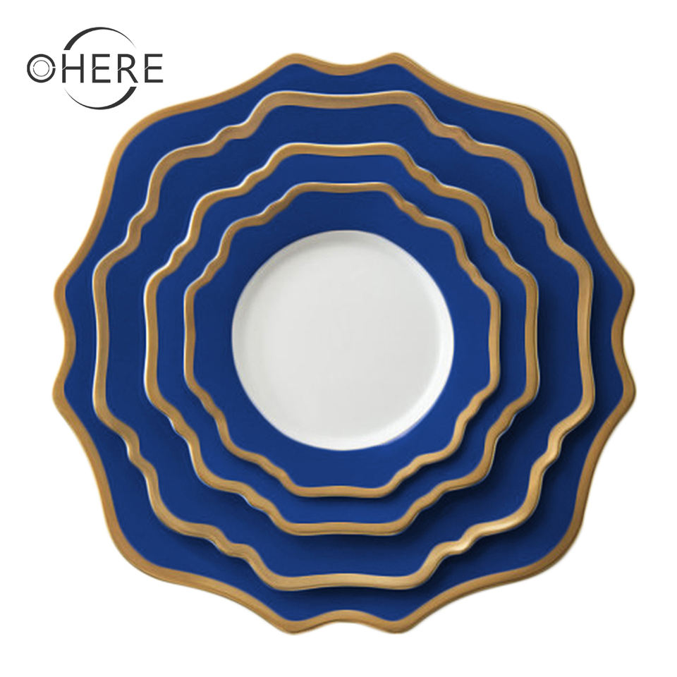 Jialuoohery — service de vaisselle de mariage en porcelaine écologique, ensemble de vaisselle de luxe, assiettes chargeur en céramique bleu or, pour la location de fête