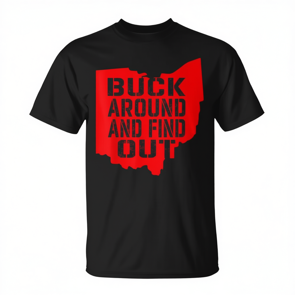 Ohio Map Buck Around And Find Out T-Shirt noir unisexe à col rond et manches courtes avec impression sérigraphique